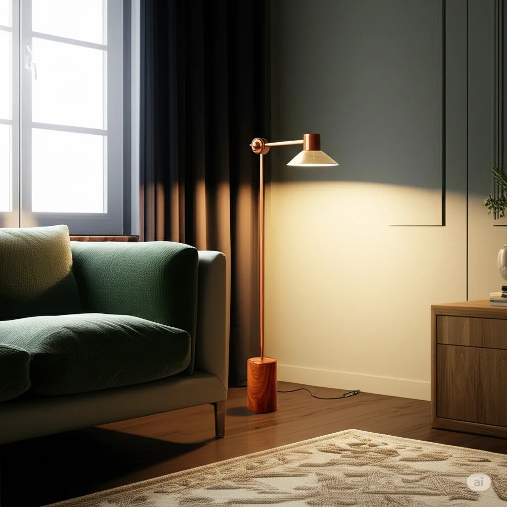 Floor Lamp with Small Vase Brass Sisau Base